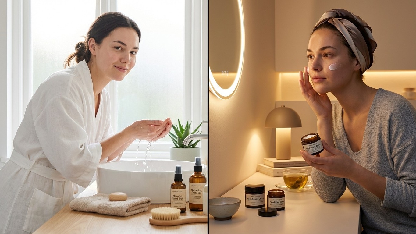 Der erste Kontakt am Morgen: kühles Wasser am Handgelenk, ein kurzer Blick in den Spiegel, die Haut noch leicht verknittert vom Kissen. Abends dagegen dieses andere Gefühl, wenn der Tag wie ein Film abfällt: Stadtluft, Sonnencreme, vielleicht Make-up, vielleicht nur Schweiß und Stress. Und genau da liegt der Kern der Sache: Die Haut lebt in zwei Takten. Ein Tagesmodus, der schützen will. Ein Nachtmodus, der repariert.