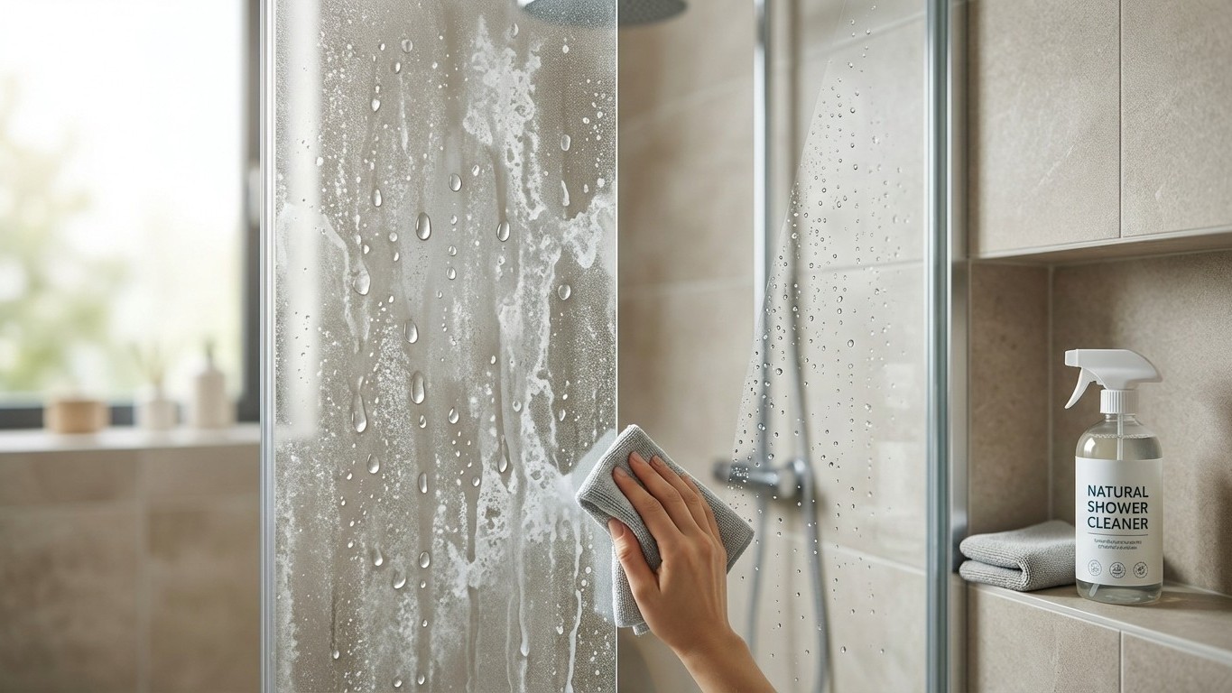 Strahlend sauber und streifenfrei: die blitzschnelle Methode gegen hartnäckigen Kalk auf der Glasduschwand – ganz ohne aggressive Chemie